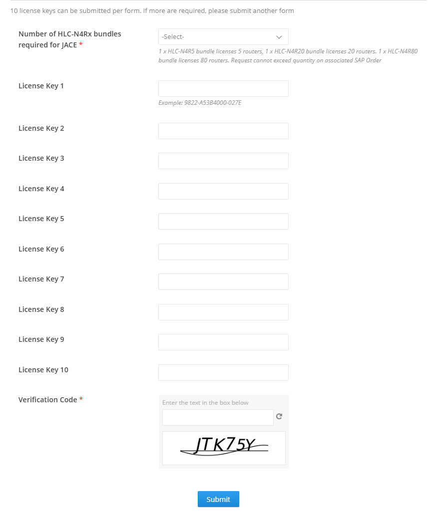 - Bij een project met meerdere license keys dienen deze allen ingevoerd te worden, bij meerdere Jace's dient men ook meerdere Host ID's in te vullen.